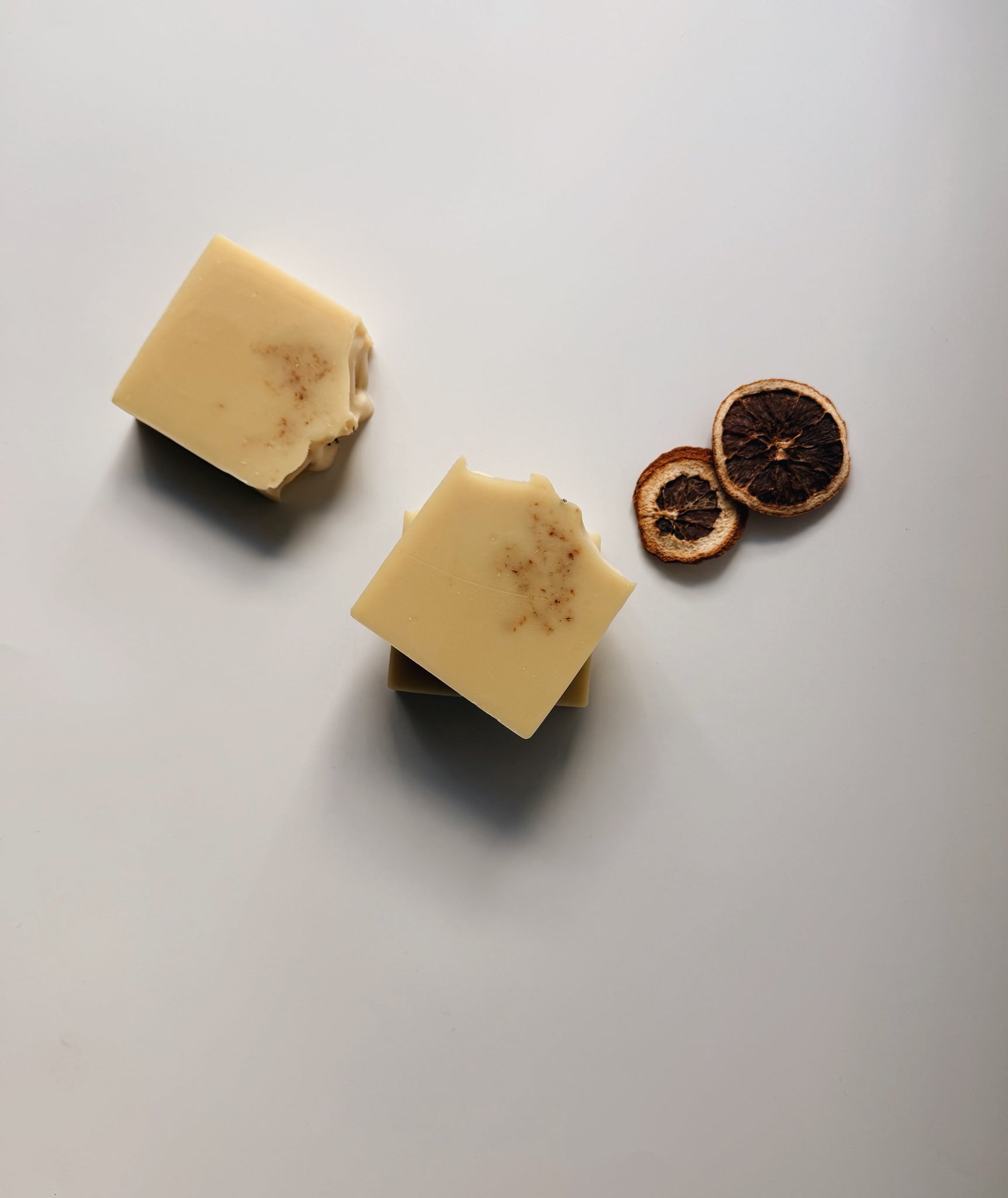 Transform your daily cleanse into a serene, spa-like ritual with our natural orange + lavender soap. Handcrafted with fresh coconut milk & extra virgin olive oil for a luxuriously silky lather, this bar gently cleanses while delivering deep hydration.