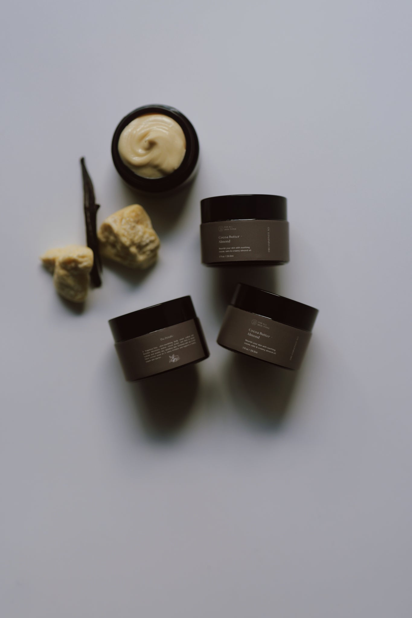 Our new Cocoa butter almond body butter was designed for skin that needs calm, comfort, and deep moisture without added scent. Formulated with a blend of organic cocoa butter, cold-pressed sweet almond oil, and wildcrafted murumuru butter, this butter delivers rich hydration with a silky, non-greasy finish. Colloidal oatmeal soothes irritation, making it ideal for sensitive, reactive, or post-shave skin.