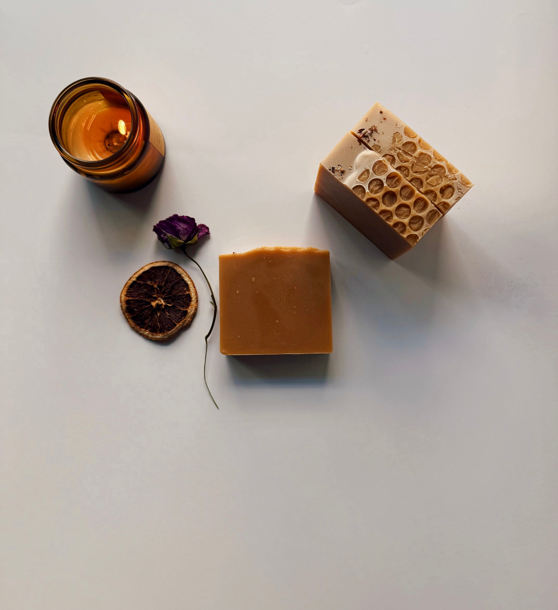Softly floral, gently cleansing, and deeply nourishing, this wildflower honey soap is a layered blend of antioxidants and skin softening properties. Handcrafted with pure wildflower honey, fresh oat milk, and mineral-rich Yellow Brazilian clay, it offers a creamy, soothing lather that leaves your skin feeling soft, smooth, and beautifully balanced.